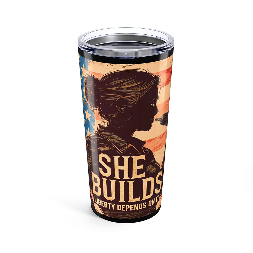She Builds Tumbler 20oz, Gift for Women, Patriotic Drinkware